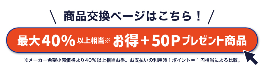 期間中にポイントで商品交換をすると、どの商品でも1コにつき50Pプレゼント!欲しかった商品の交換チャンス!