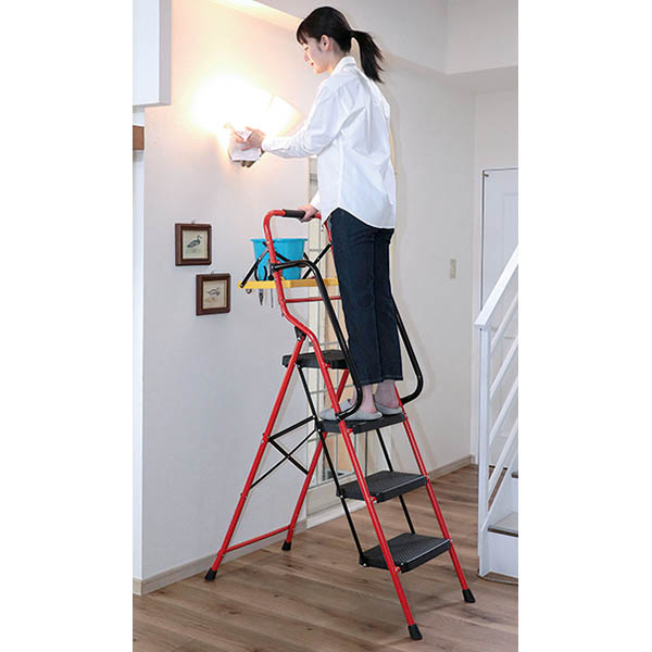 物が置けるトレーと手すり付きで、高所の作業がラクになる!